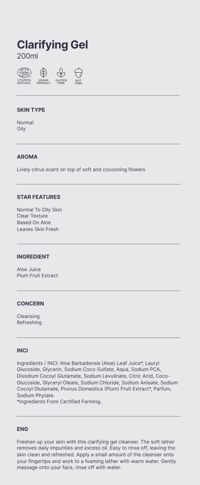 Formulated with mild, plant-based cleansing agents like Lauryl Glucoside, Coco-Glucoside, and Sodium Cocoyl Glutamate, this gel creates a soft lather that deeply cleanses pores while respecting the skin barrier. Sodium PCA helps lock in hydration, while Plum Fruit Extract delivers antioxidants to promote a healthy, refreshed complexion.